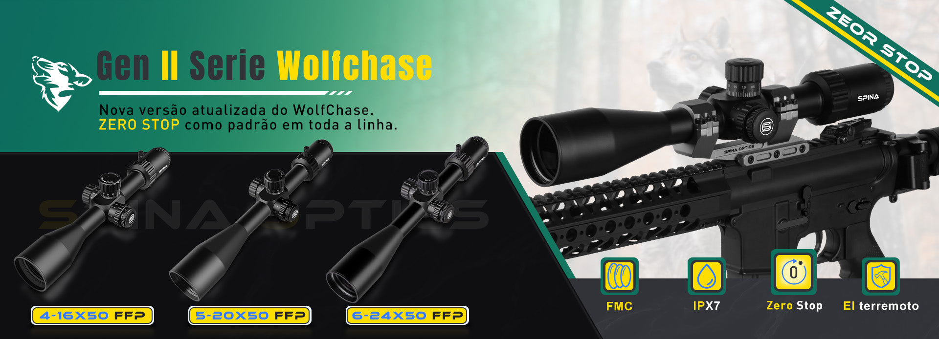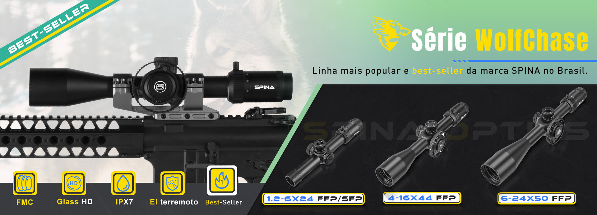 SPINA OPTICS WolfChase HD 6-24x50 FFP SF Parallax 10 jardas até o infinito