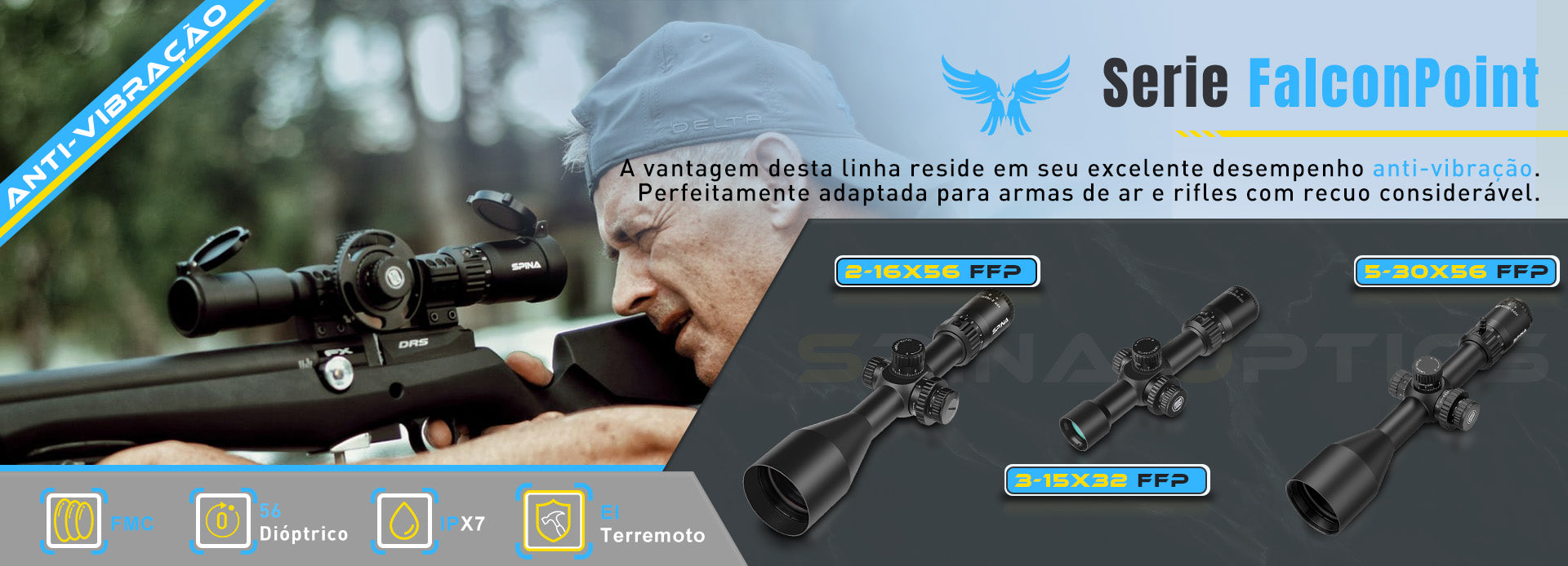 SPINA OPTICS FalconPoint HD 3-15x32 FFP SFIR Com retículo iluminado Parallax 5 jardas até o infinito
