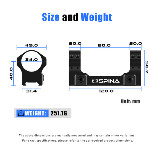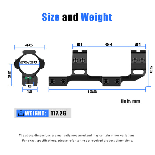 Monobloco para Trilho Dovetail de 11mm Anéis de Mira 25,4mm/30mm com Nível de Bolha