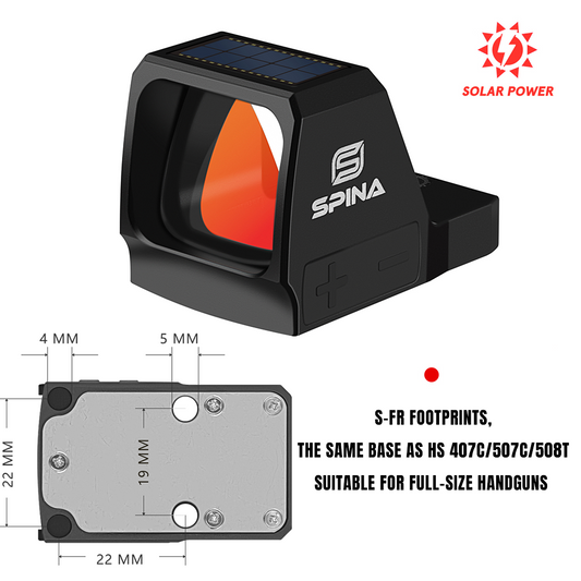 SPINA OPTICS Scorner Pro 1x22x25 Mira de Ponto Vermelho RMR para Pistola com Energia Solar