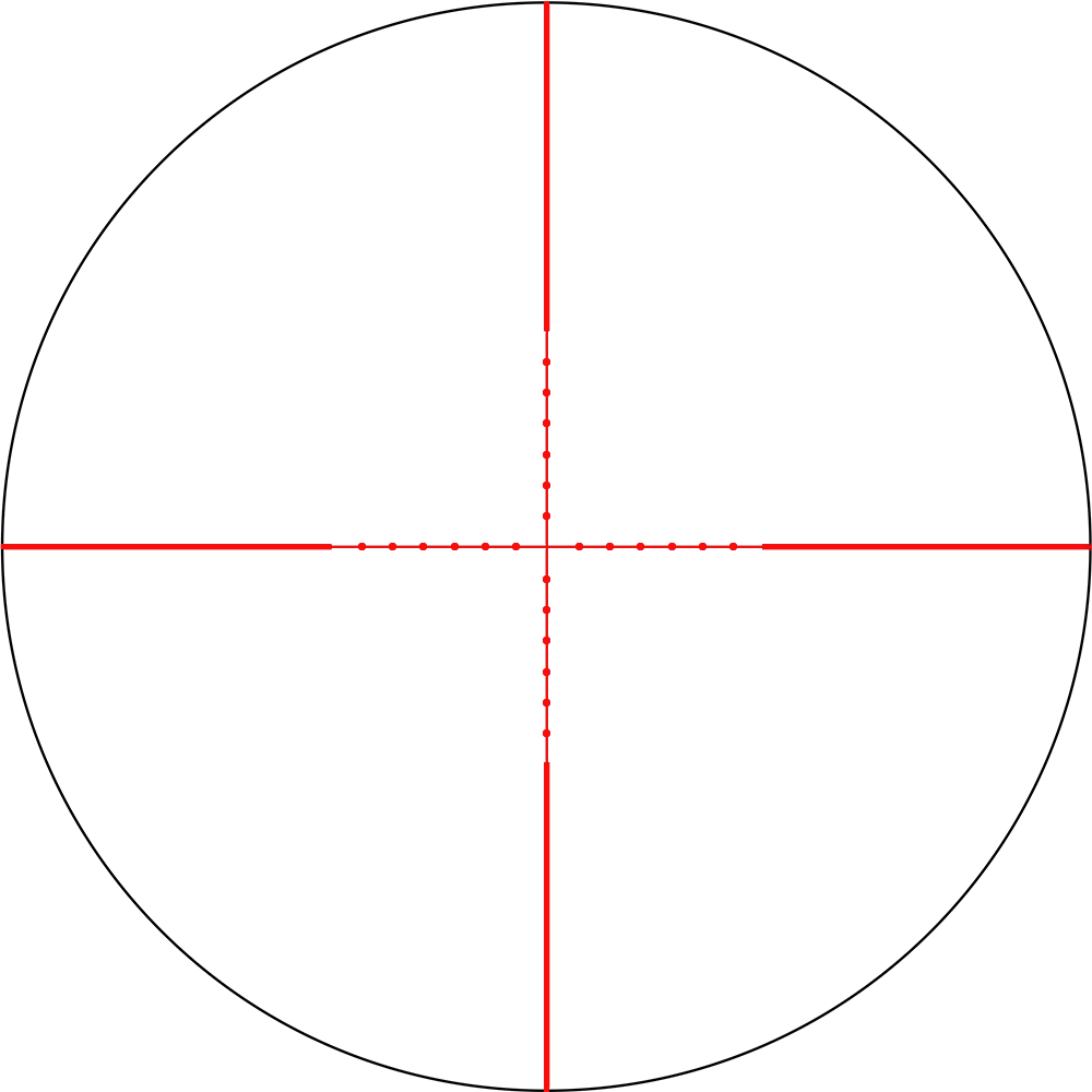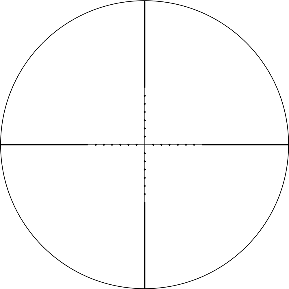 1/4 MOA/clique (Cada clique move o ponto de impacto 0.25" @ 100 jardas ≈ 7mm @ 100m) |