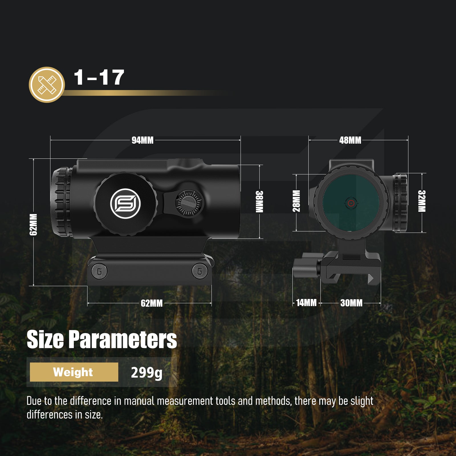 Ampliação 1x Perfeita: Ideal para caça de pequeno e médio porte a curta e média distância, permitindo disparos rápidos e precisos com ambos os olhos abertos. -