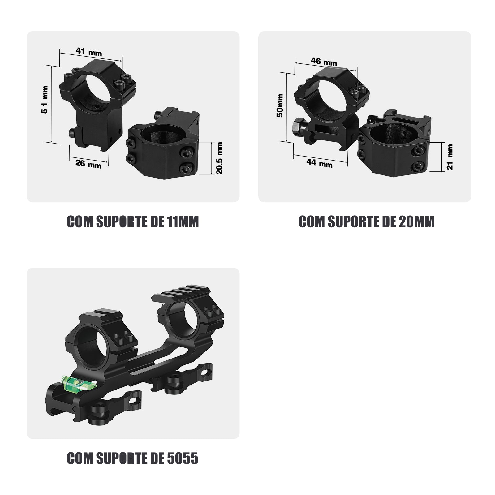 Compatível com Diversas Armas: Otimizada para rifles PCP, é igualmente compatível com carabinas de baixo recuo como .22 LR, .17 HMR e até .223 Wylde, oferecendo grande flexibilidade de uso.